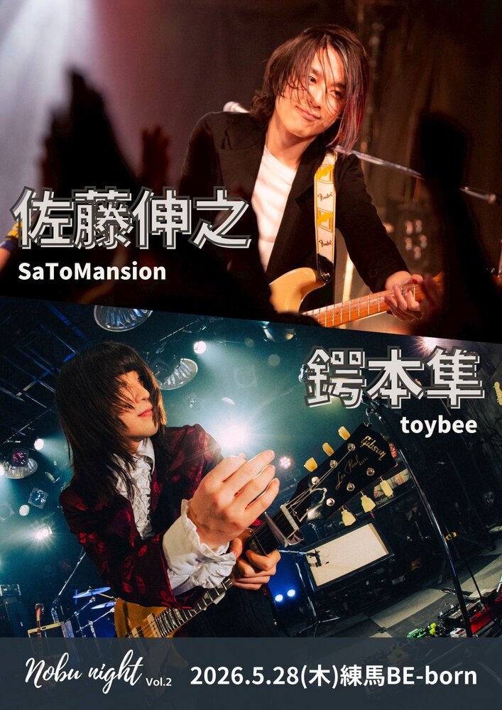 のぶナイ Vol.2 EVENT 2026/05/28(木) 東京|練馬BE-born 開場 19:00 / 開演 19:30 出演 佐藤伸之(SaToMansion) / 鍔本隼(toybee) TICKET ・TIGET SOLD OUT URLをコピーする 報告する